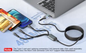 - Only type c and Lightning heads of this cable can transmit data when used separately;